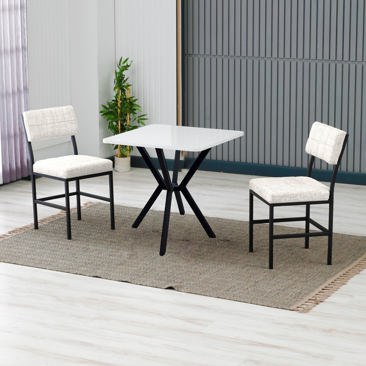 Set masa extensibila si scaune, 3 piese, Hanah Home, Dubai, Crem/Alb