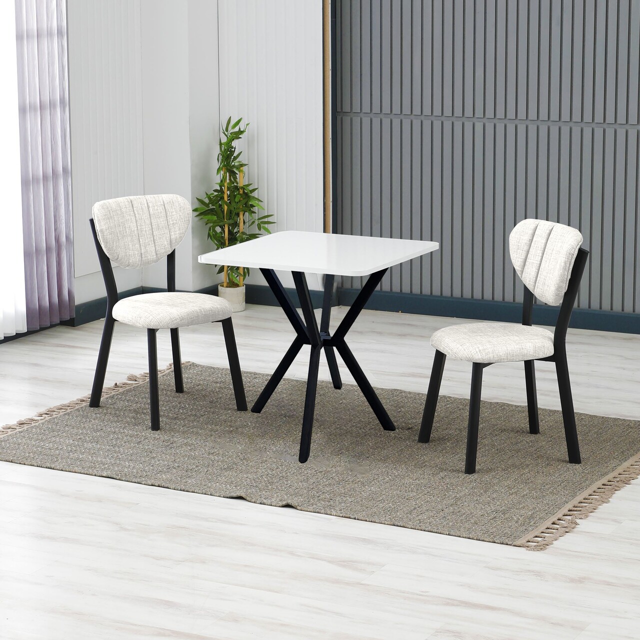 Set masa extensibila si scaune, 3 piese, Hanah Home, Elma, Crem/Alb