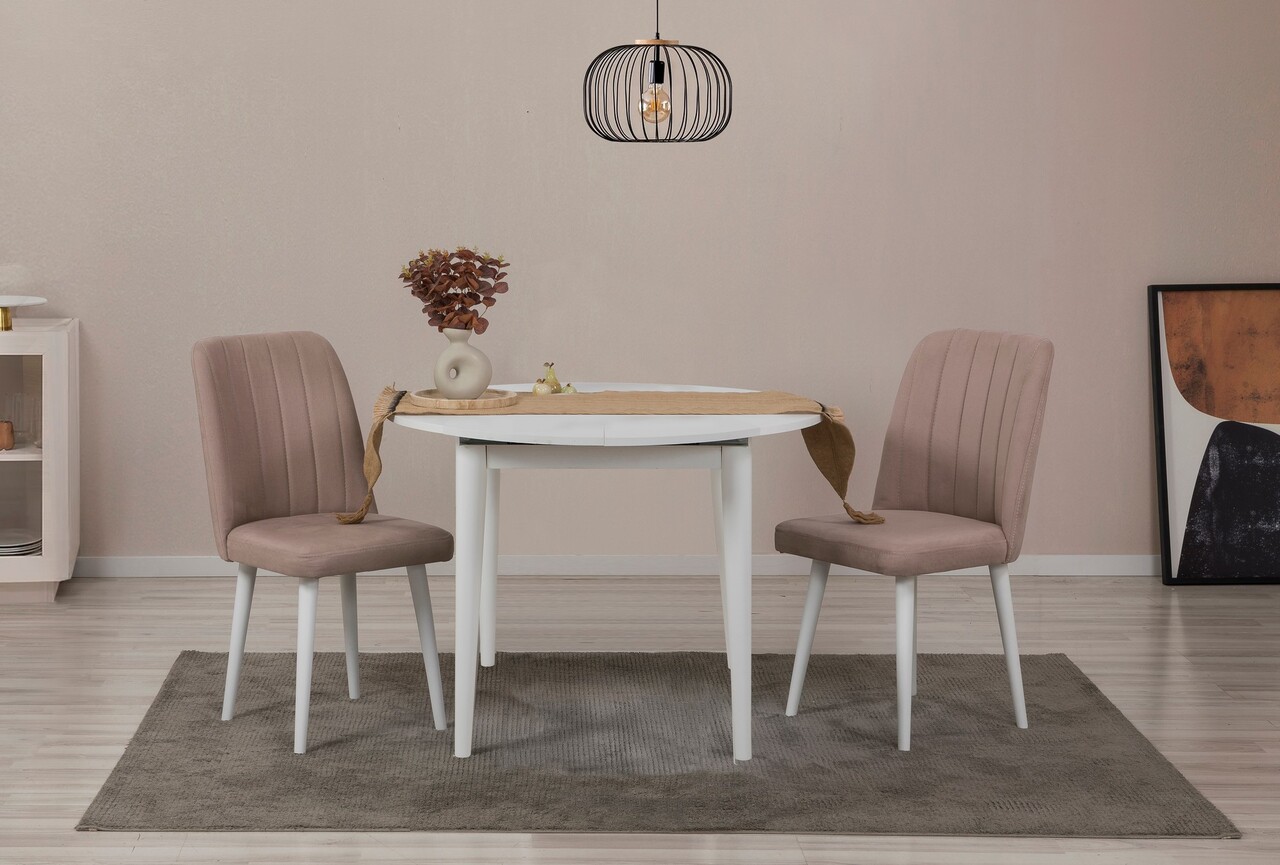 Set masa extensibila si scaune, 3 piese, Hanah Home, Vina 0900, Alb / Piatra