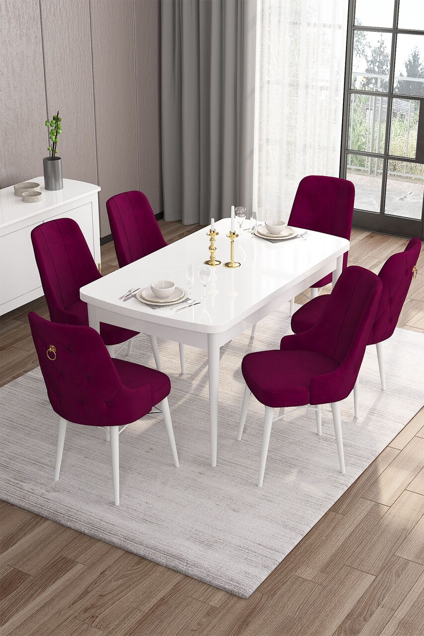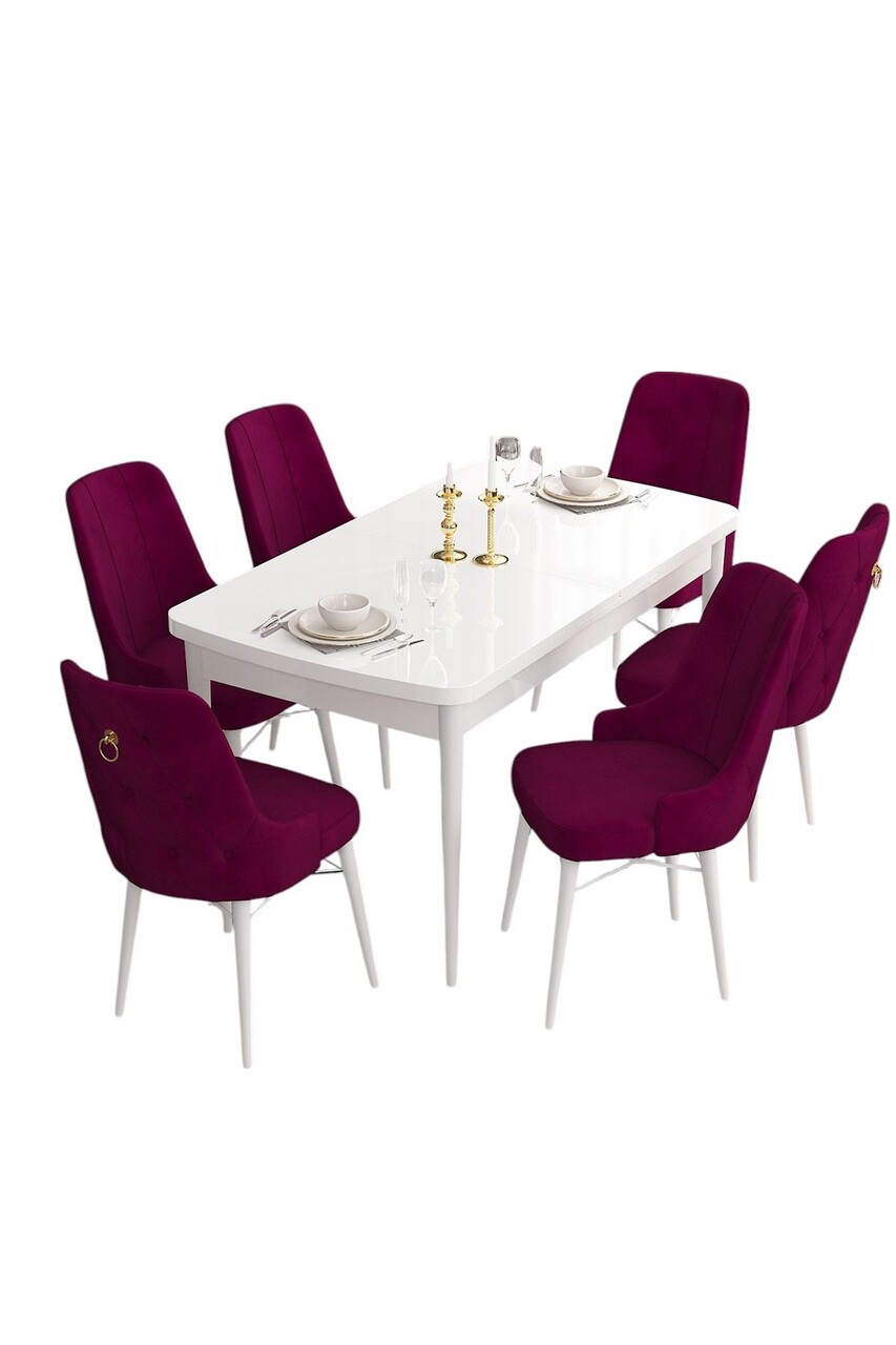 Set masa extensibila si scaune, Hanah Home, Are, Alb / Damasc