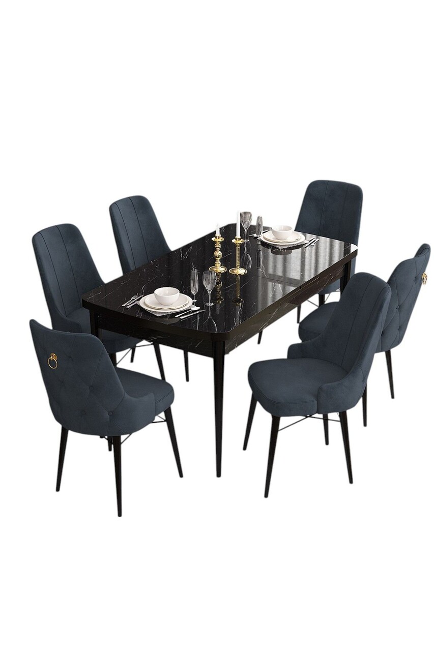 Set masa extensibila si scaune, Hanah Home, Are, Marmură neagră / Antracit