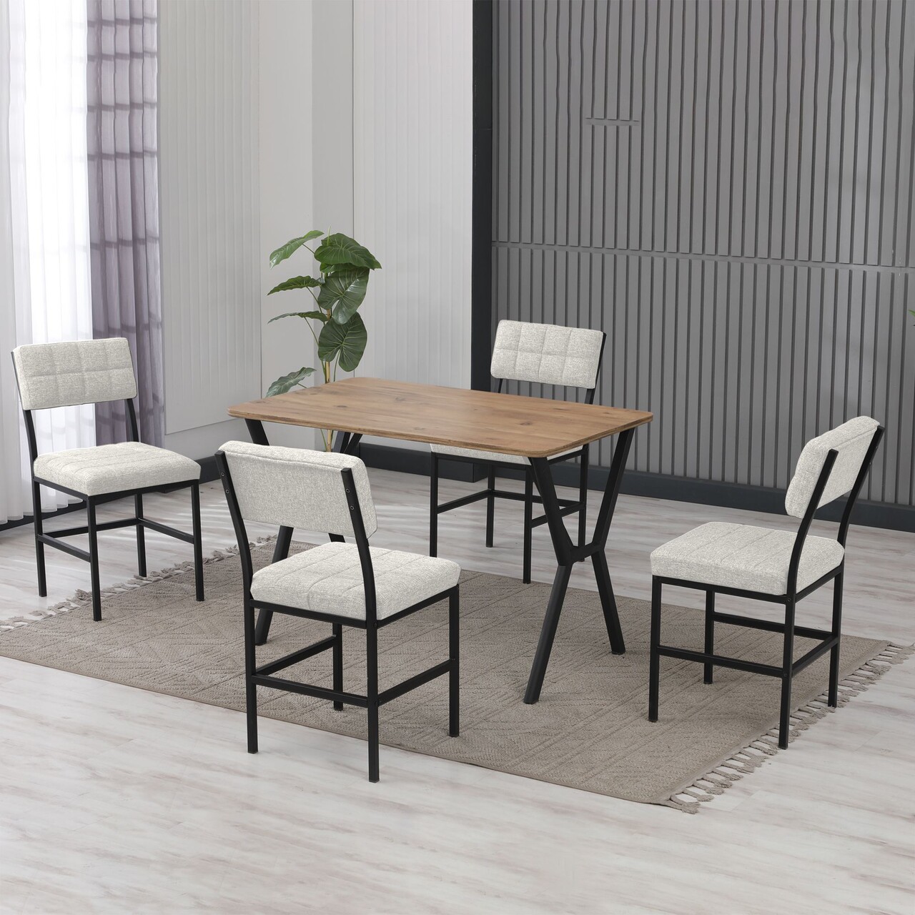 Set masa extensibila si scaune, Hanah Home, Dubai, Crema/Nuca