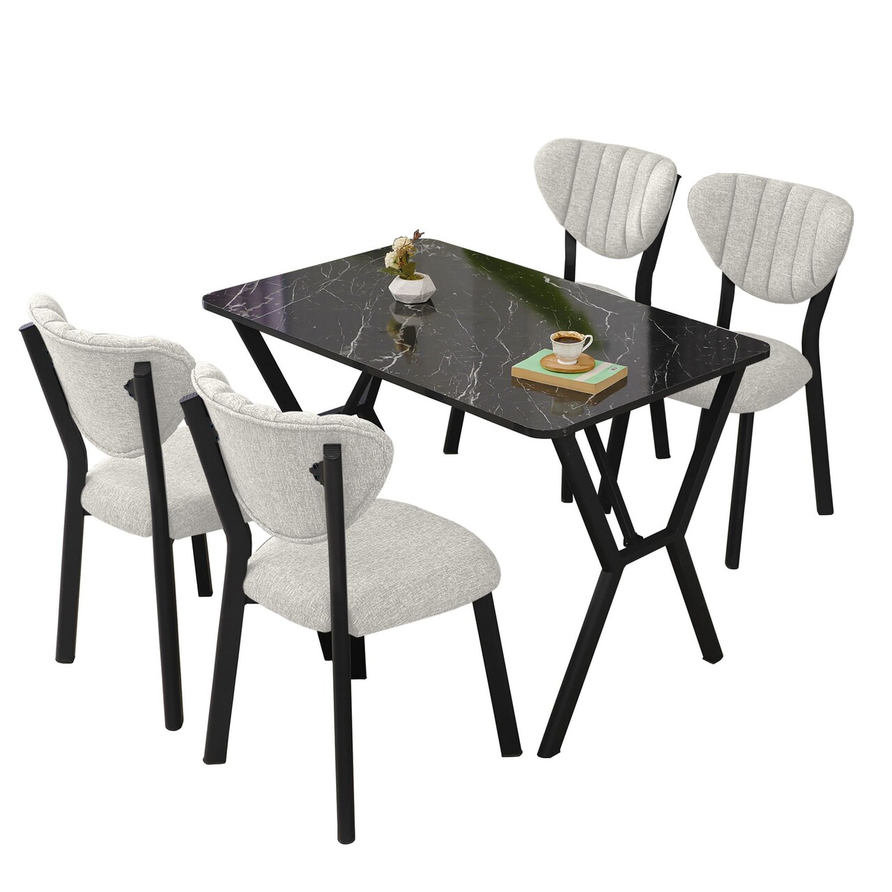 Set masa extensibila si scaune, Hanah Home, Elma, Crem/Negru