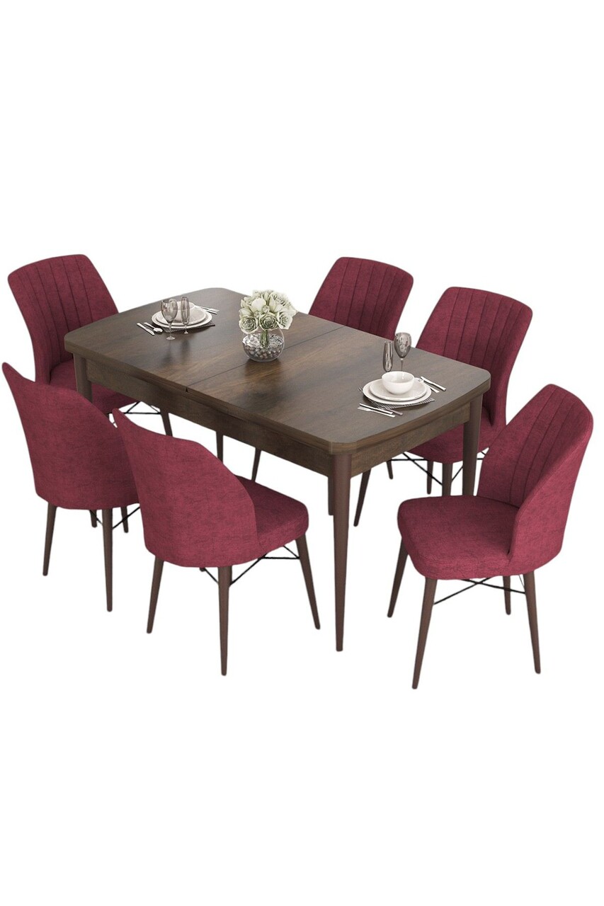Set masa extensibila si scaune, Hanah Home, Eva, Baroc / Burgundia