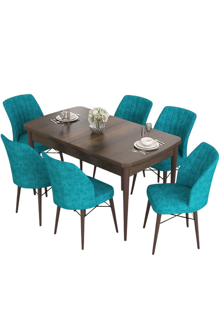 Set masa extensibila si scaune, Hanah Home, Eva, Baroc / Turcoaz