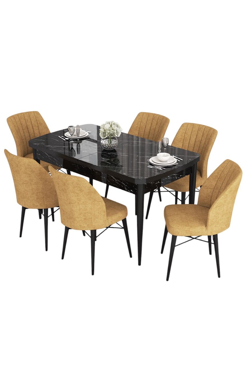 Set masa extensibila si scaune, Hanah Home, Eva, Marmură neagră / Cappuccino