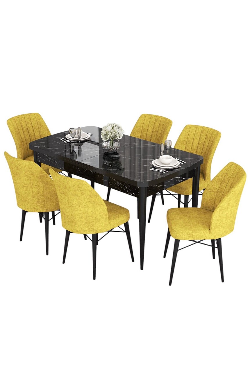 Set masa extensibila si scaune, Hanah Home, Eva, Marmură neagră / Muștar