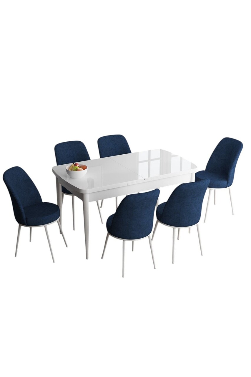 Set masa extensibila si scaune, Hanah Home, Han, Alb / Bleumarin