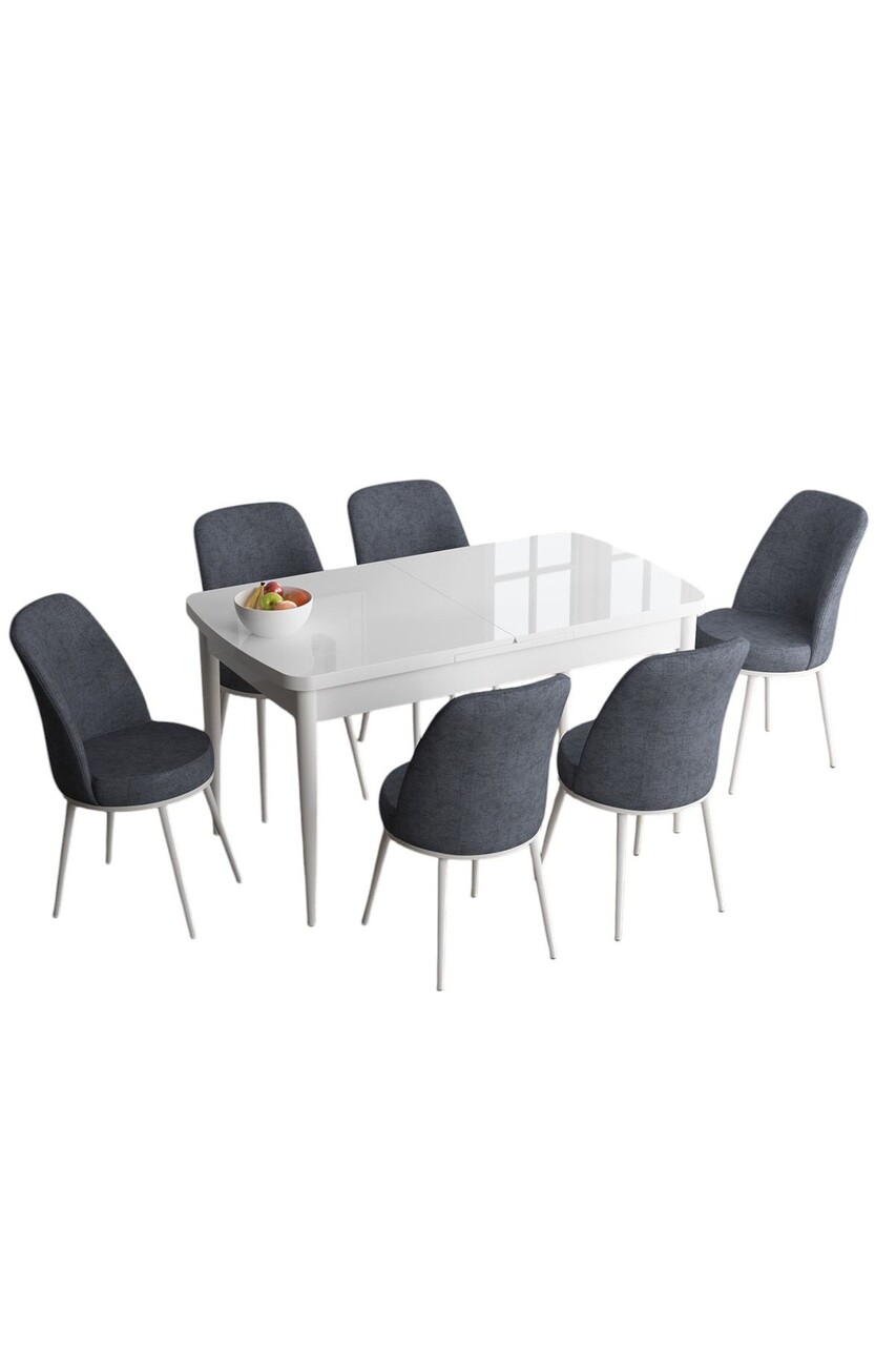 Set masa extensibila si scaune, Hanah Home, Han, Alb / Fum