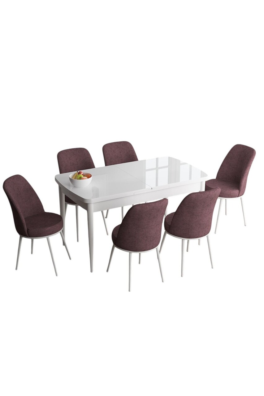 Set masa extensibila si scaune, Hanah Home, Han, Alb / Roz Păduros