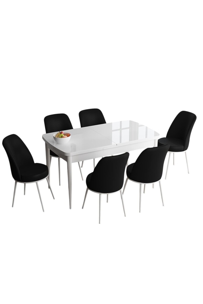 Set masa extensibila si scaune, Hanah Home, Han, Alb/Negru