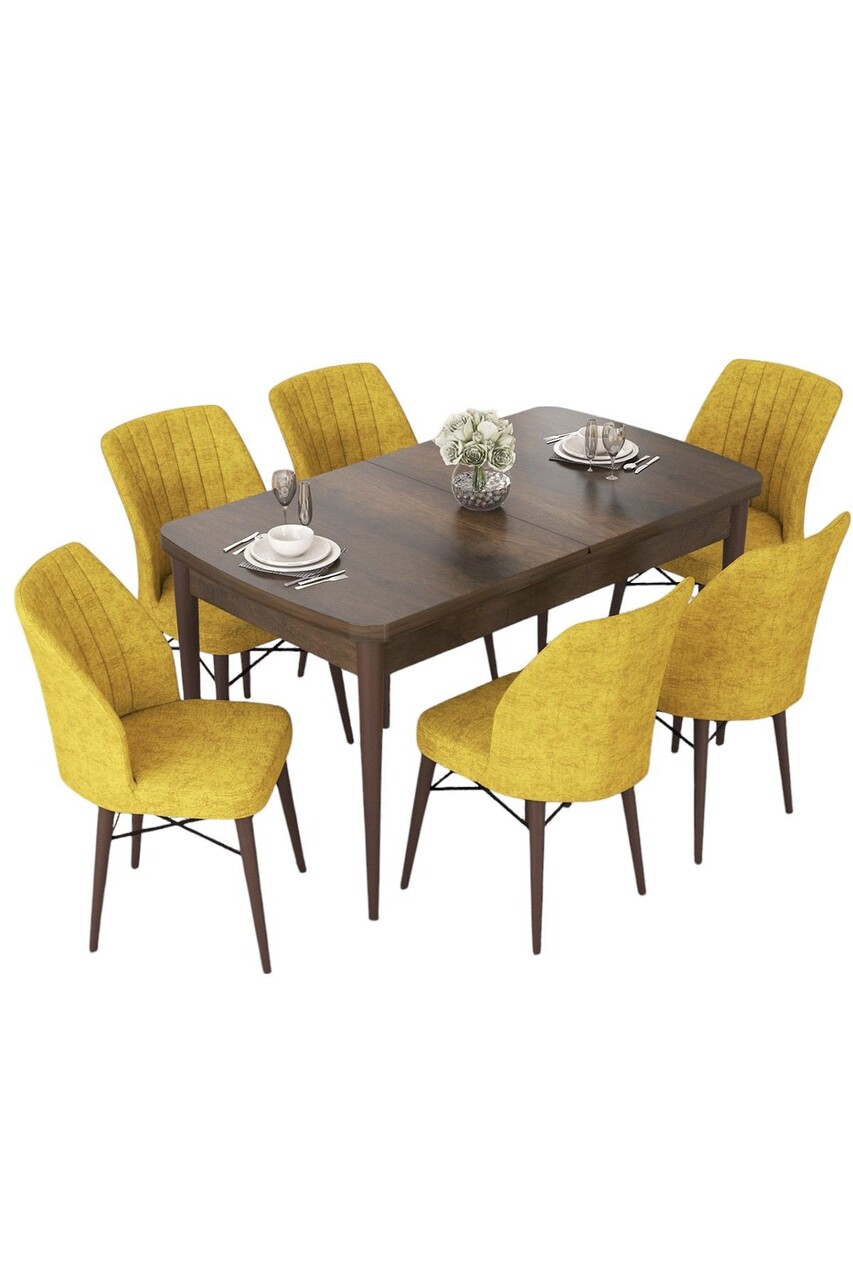 Set masa extensibila si scaune, Hanah Home, Nef, Baroc / Muștar