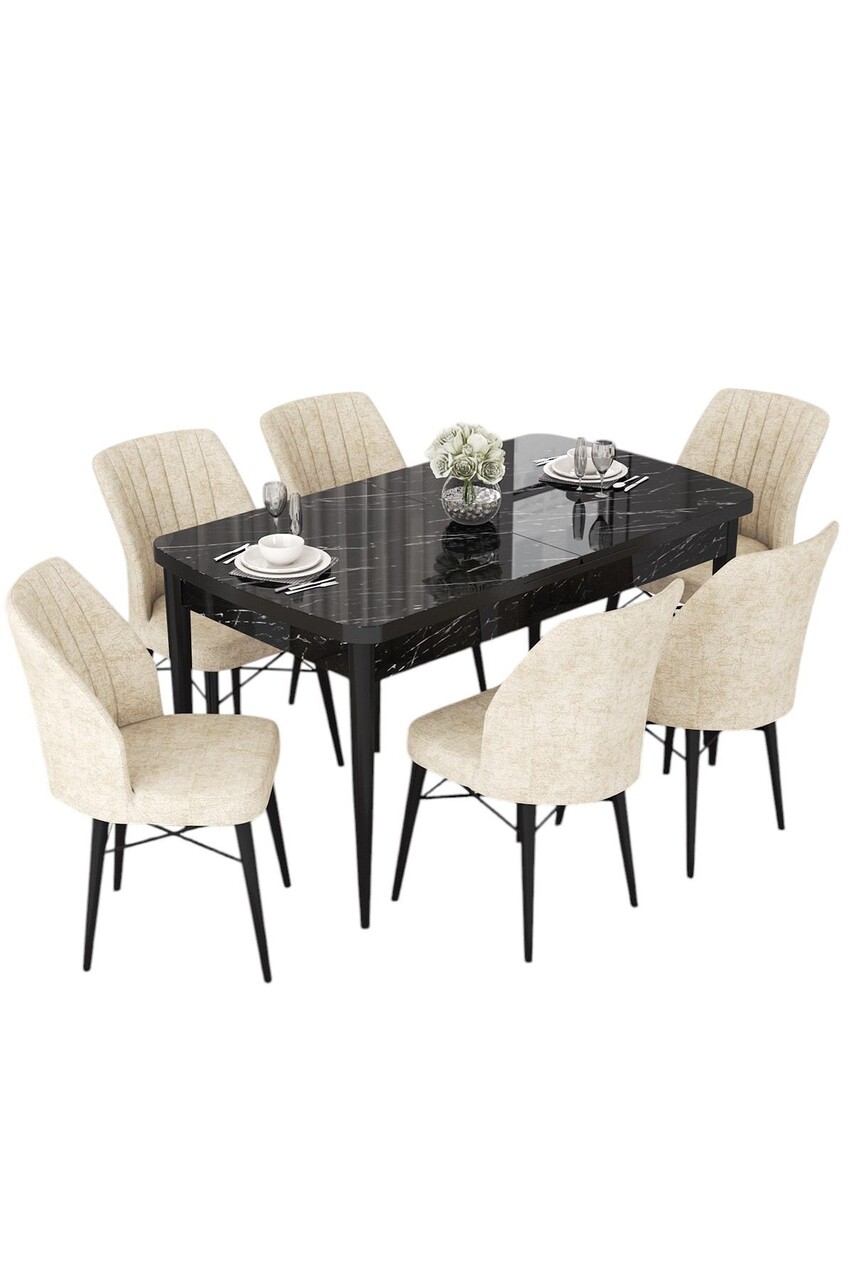 Set masa extensibila si scaune, Hanah Home, Nef, Marmură neagră / Crem
