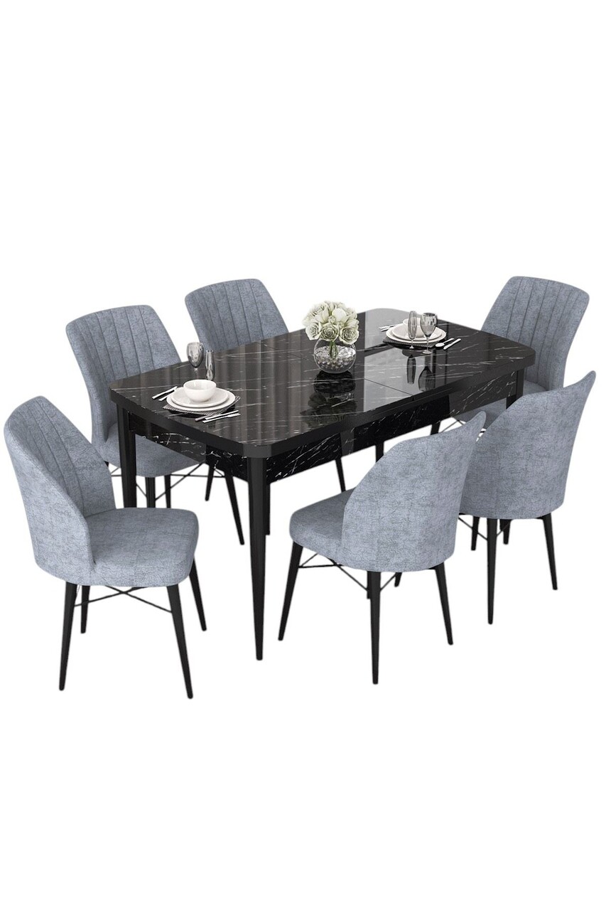 Set masa extensibila si scaune, Hanah Home, Nef, Marmură neagră / Gri