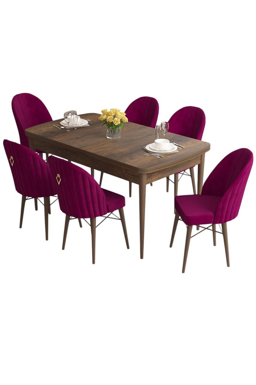 Set masa extensibila si scaune, Hanah Home, Roz, Baroc / Damasc