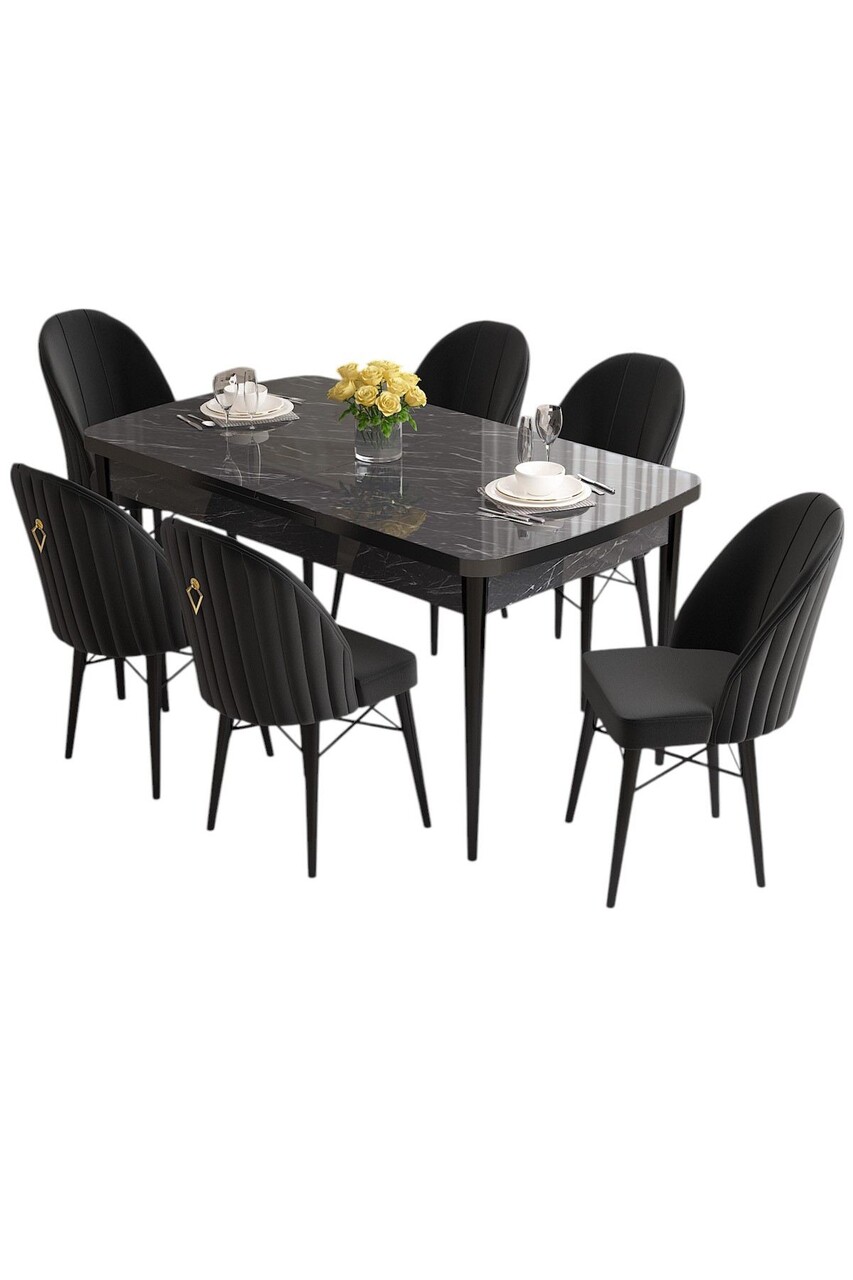 Set masa extensibila si scaune, Hanah Home, Roz, Marmură neagră / Negru