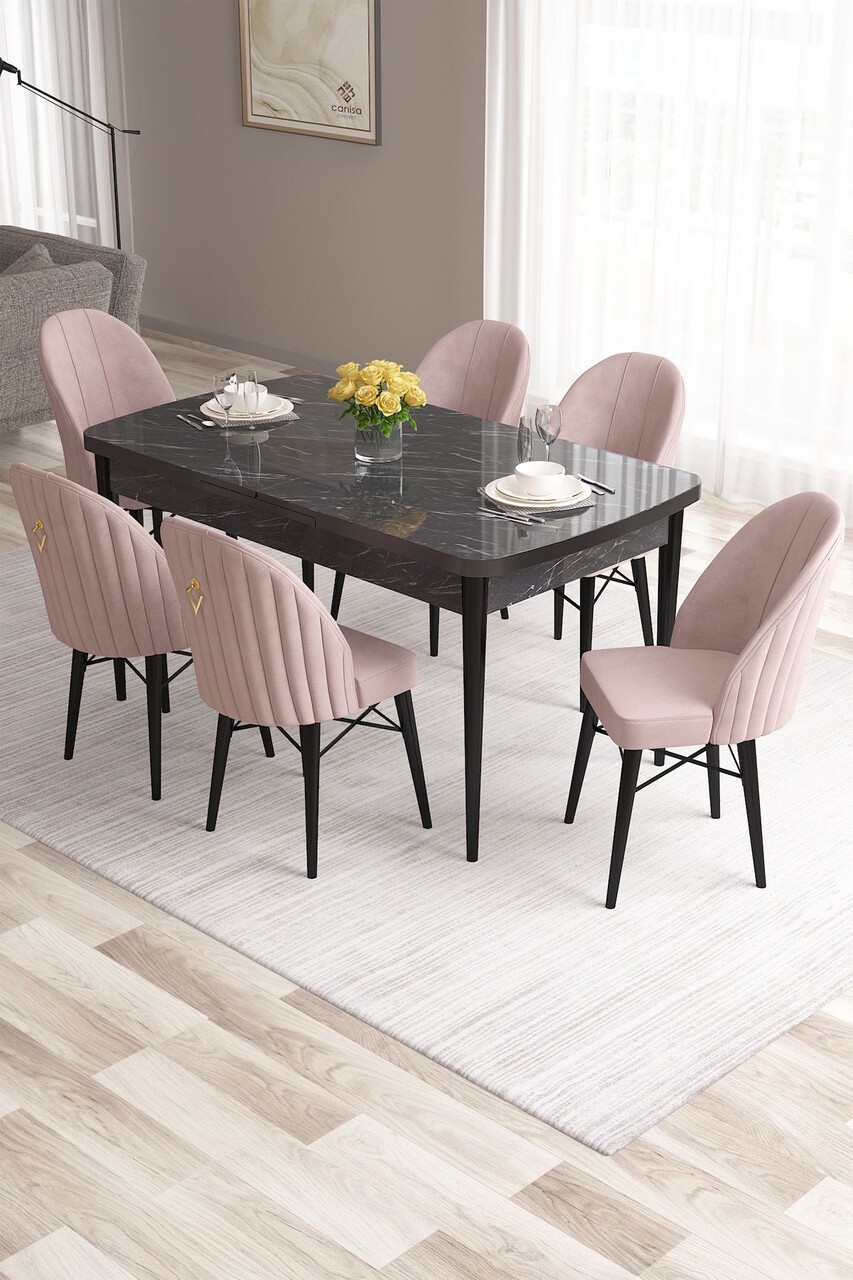 Set masa extensibila si scaune, Hanah Home, Roz, Marmură neagră / Roz