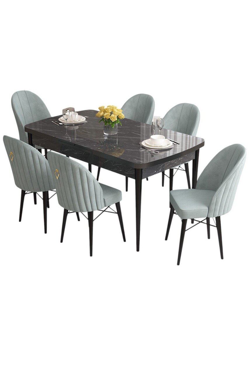 Set masa extensibila si scaune, Hanah Home, Roz, Marmură neagră / Verde marin