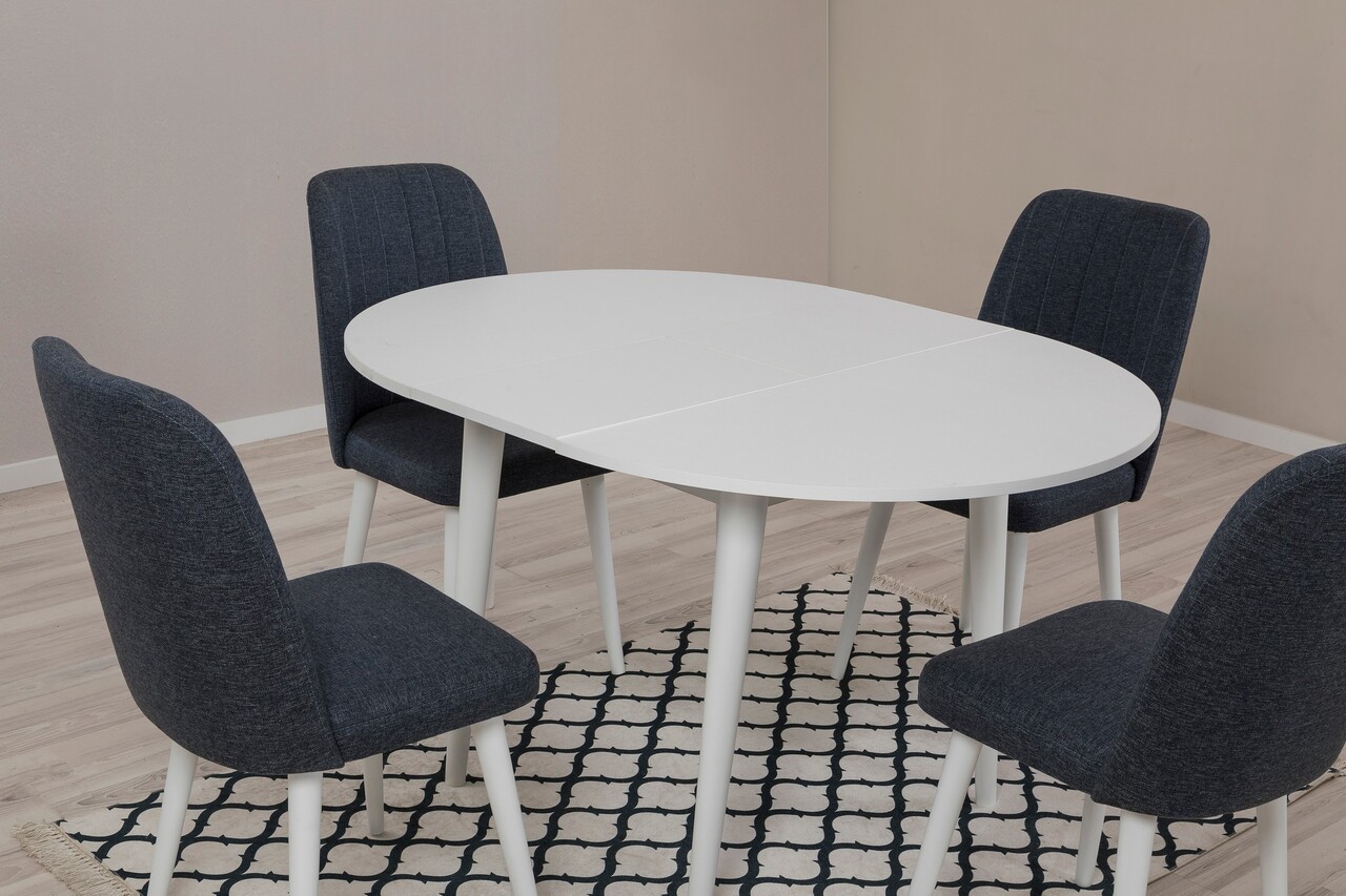 Set masa extensibila si scaune, Hanah Home, Vina 1048, Alb / Bleumarin