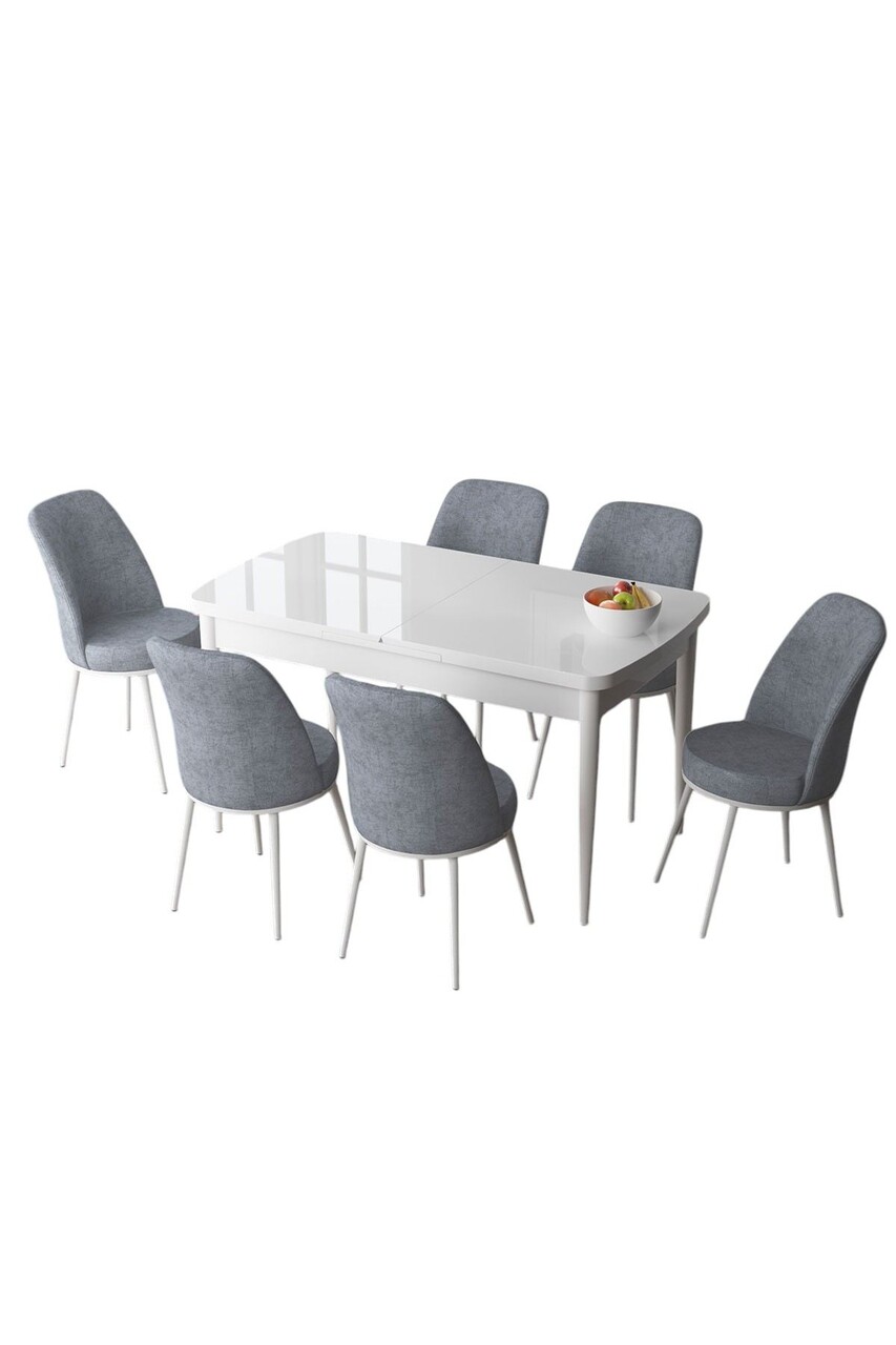 Set masa extensibila si scaune, Hanah Home, Zen, Alb/Gri