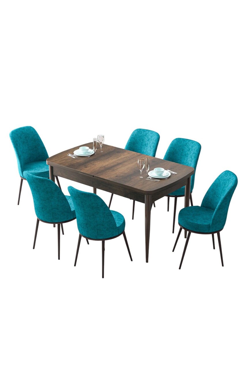 Set masa extensibila si scaune, Hanah Home, Zen, Baroc / Turcoaz