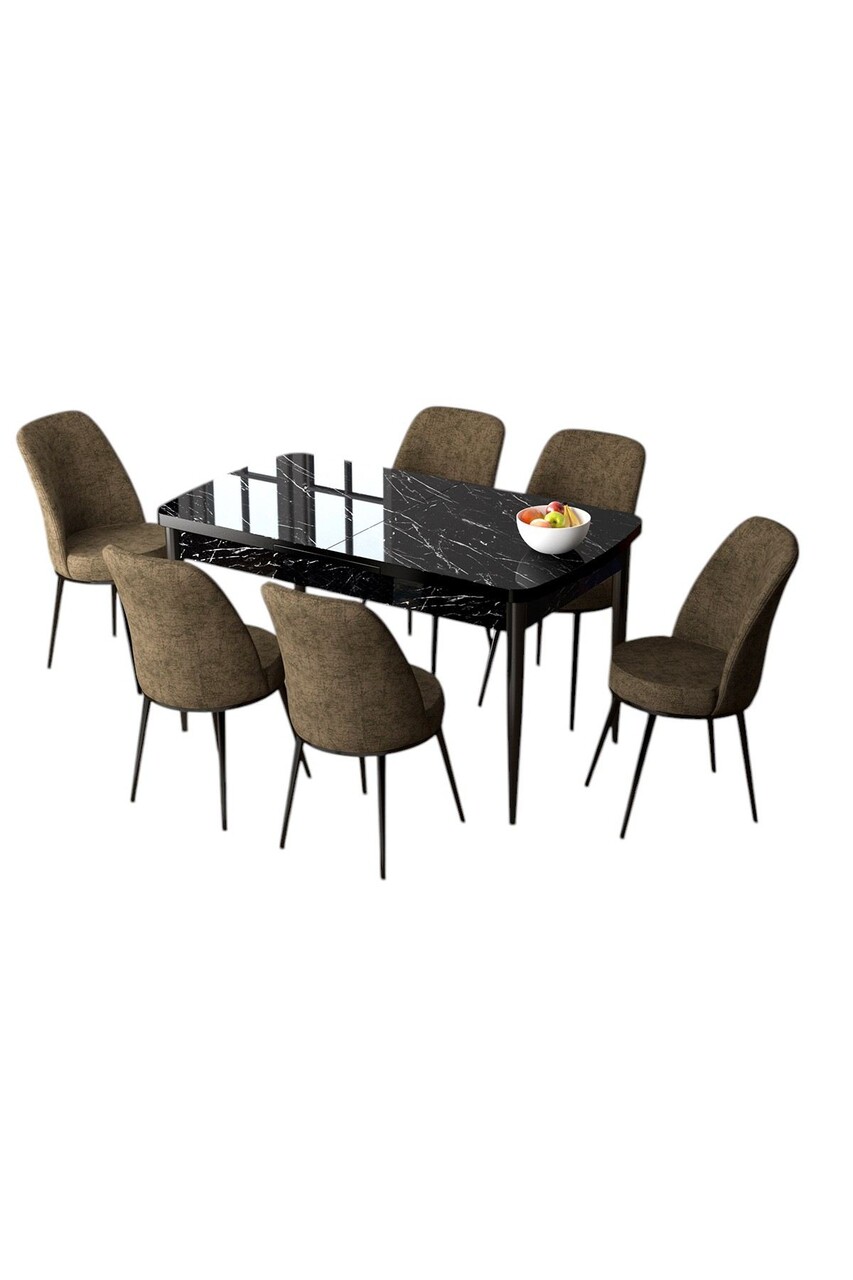 Set masa extensibila si scaune, Hanah Home, Zen, Marmură neagră / Maro
