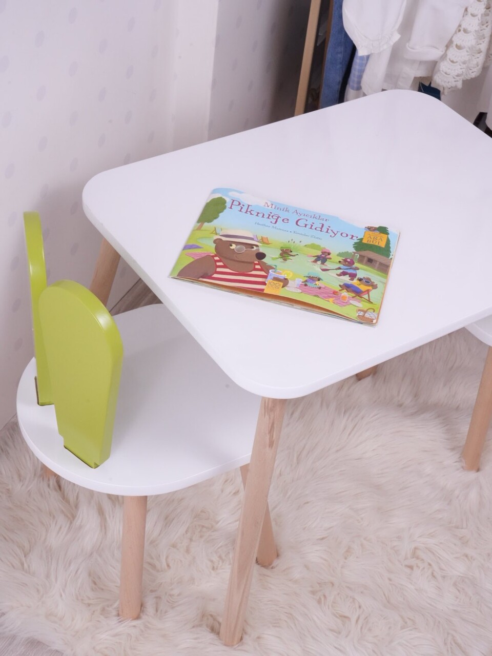 Set masa si scaun pentru copii, Bambini, Bunny One Chair Set, MDF , Verde Fistic / Alb