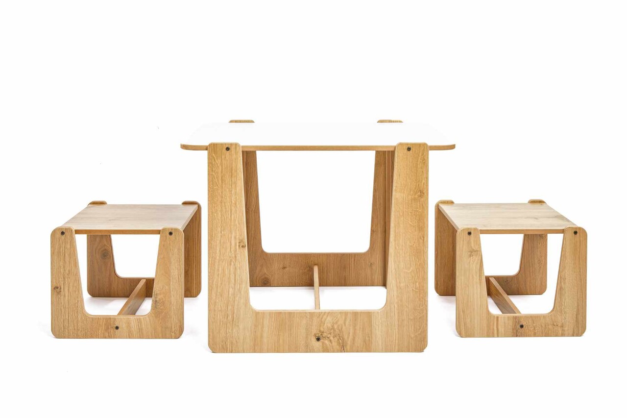 Set masa si scaun pentru copii, Hanah Home, Crane 2 St, Alb / Natural