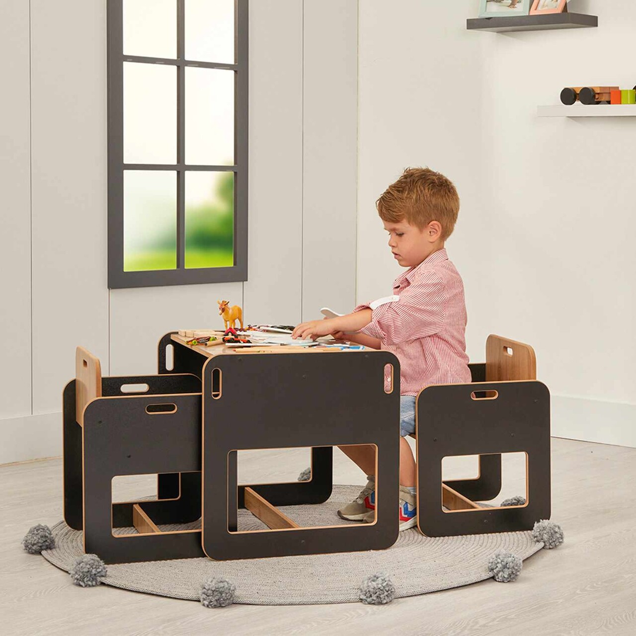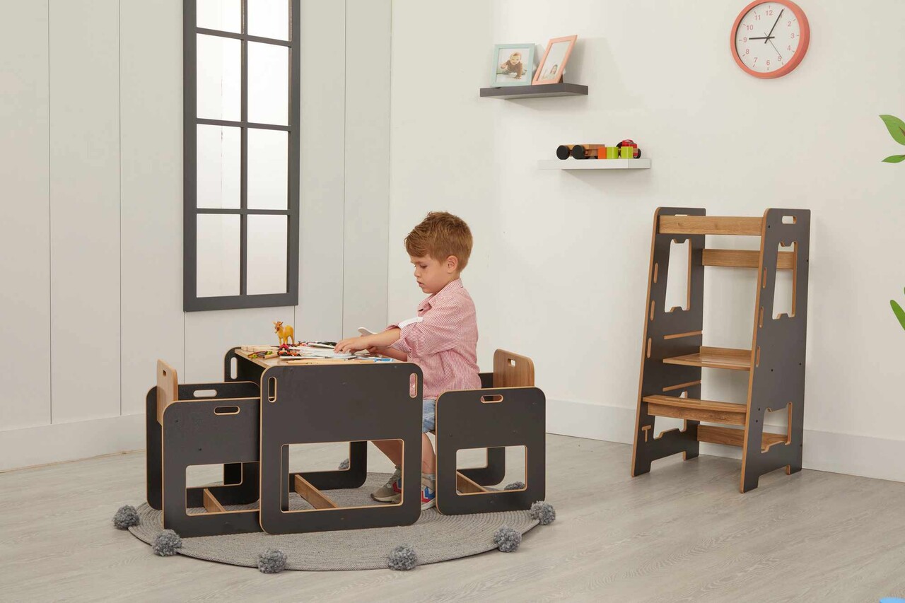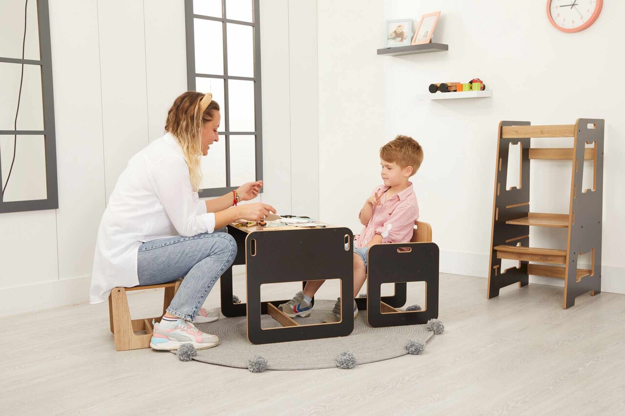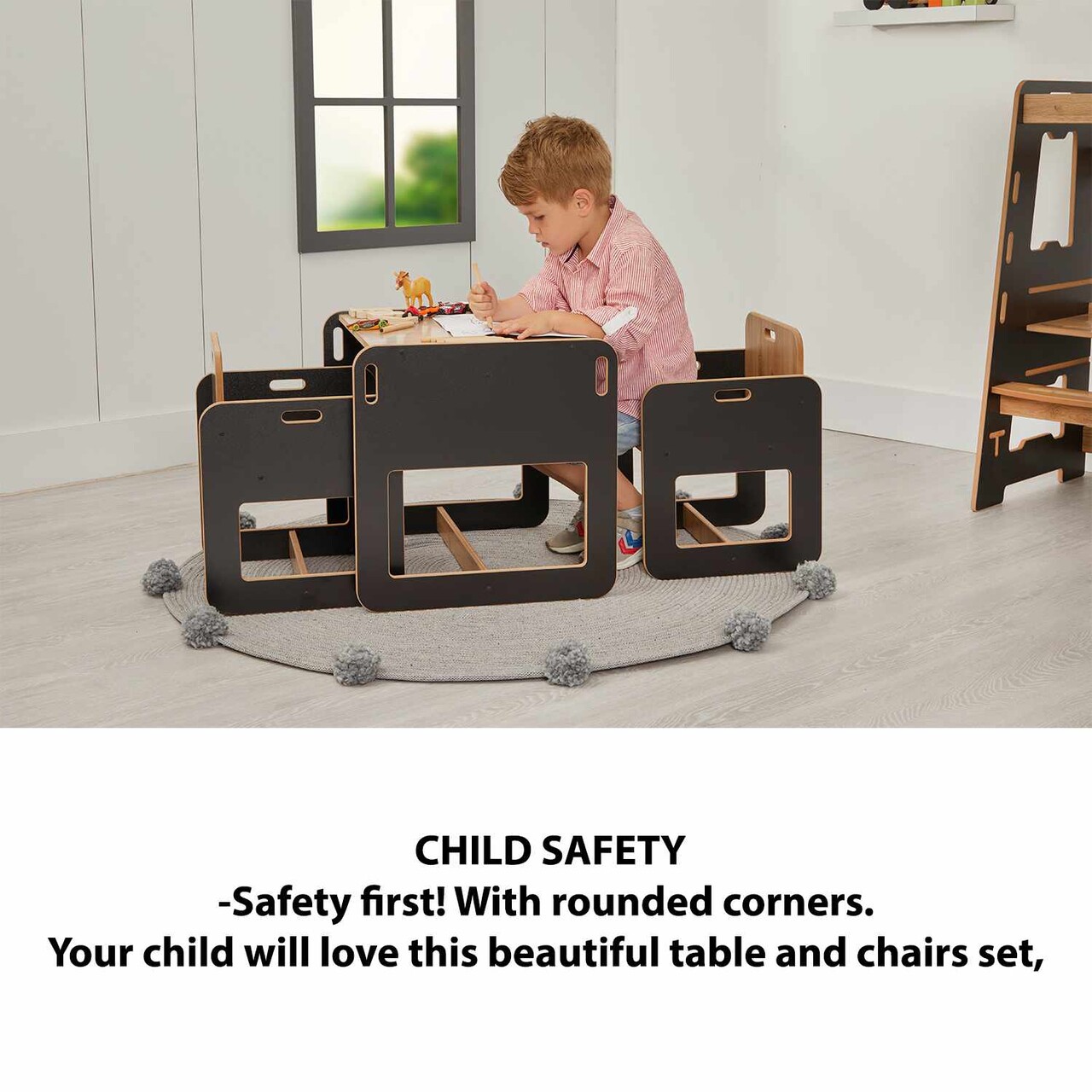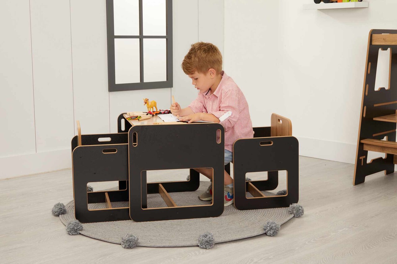 Set masa si scaun pentru copii, Hanah Home, Dove 2, Negru / Natural