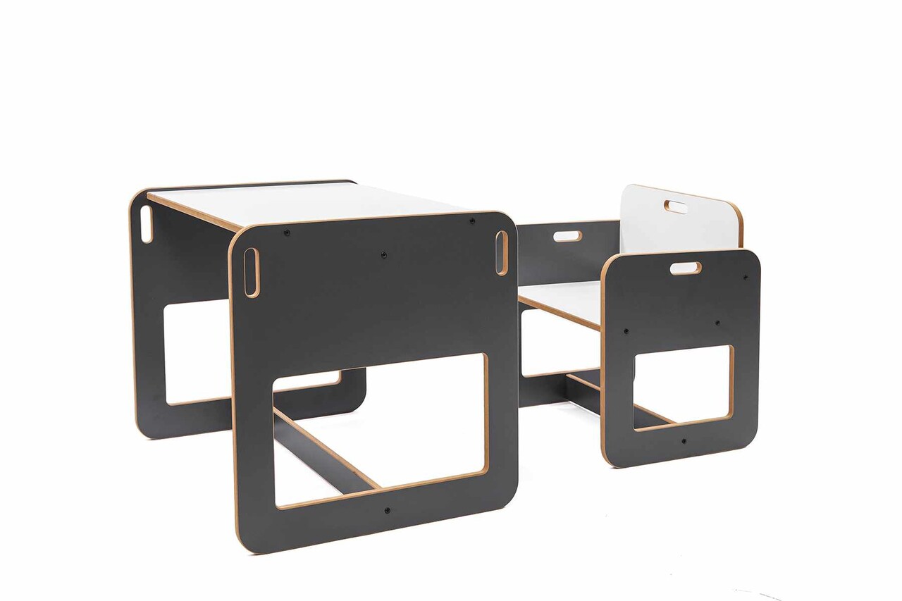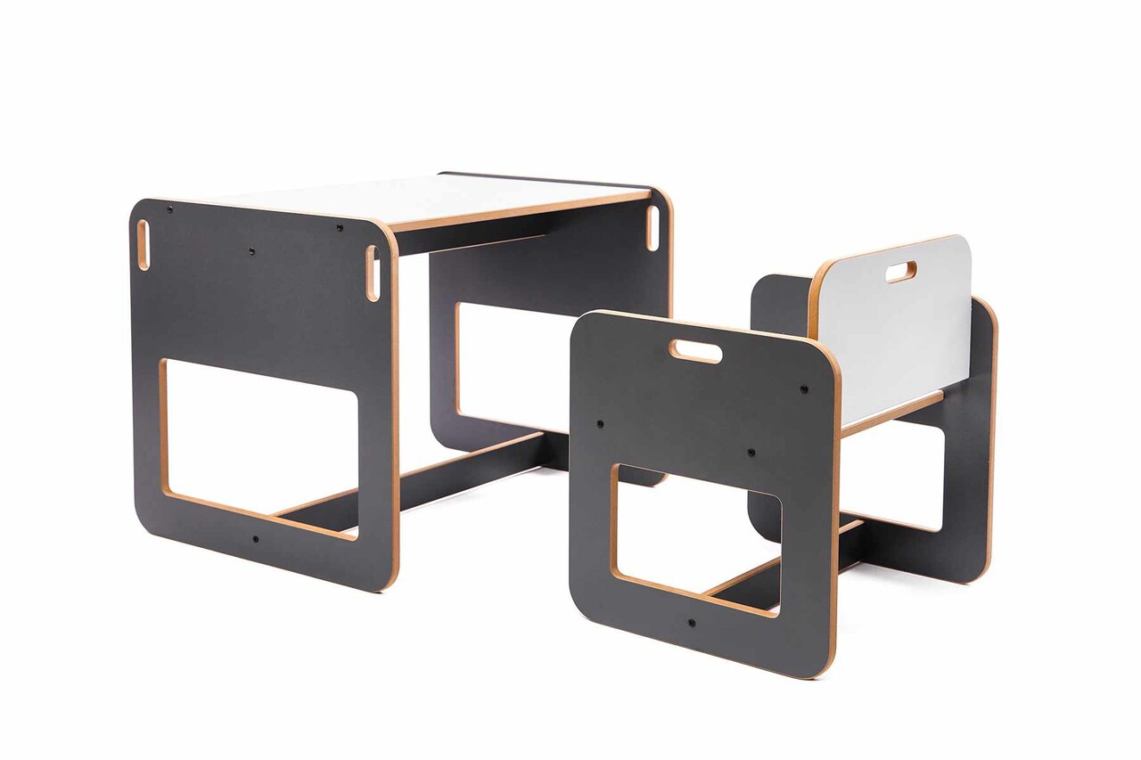 Set masa si scaun pentru copii, Hanah Home, Dove, Antracit/Alb