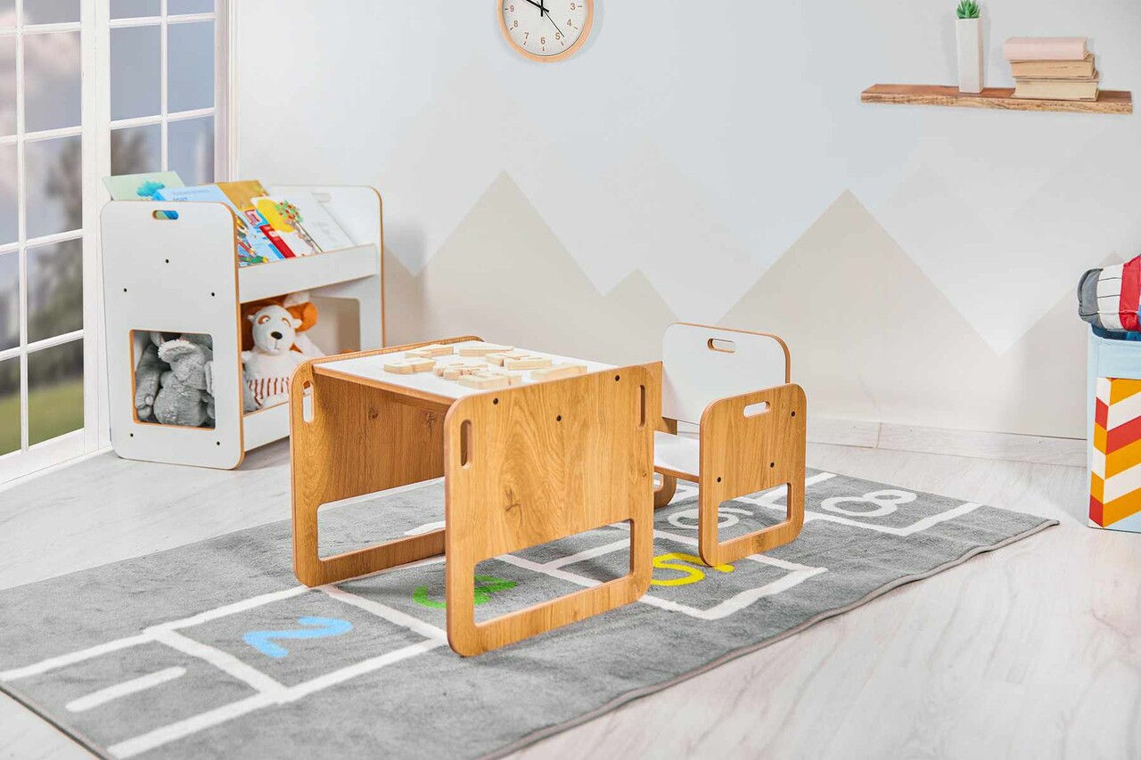 Set masa si scaun pentru copii, Hanah Home, Sparrow, Alb / Natural