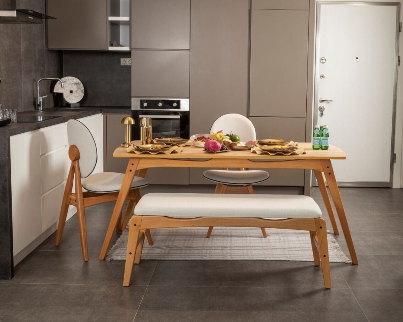 Set masa si scaune, 4 piese, Hanah Home, Touch (2S-1B) v2, Lemn, Stejar / Bej