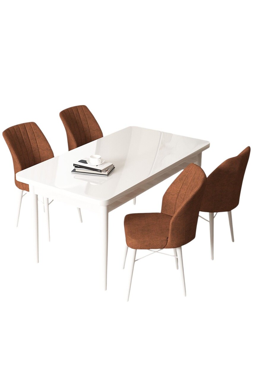 Set masă și scaune (5 bucăți), Hanah Home, Arp, Alb / Roșu-catifea