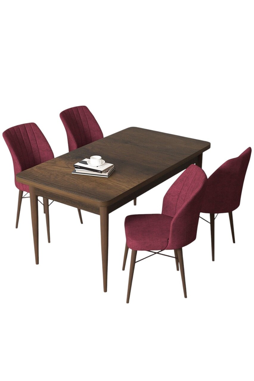 Set masă și scaune (5 bucăți), Hanah Home, Arp, Baroc / Burgundia