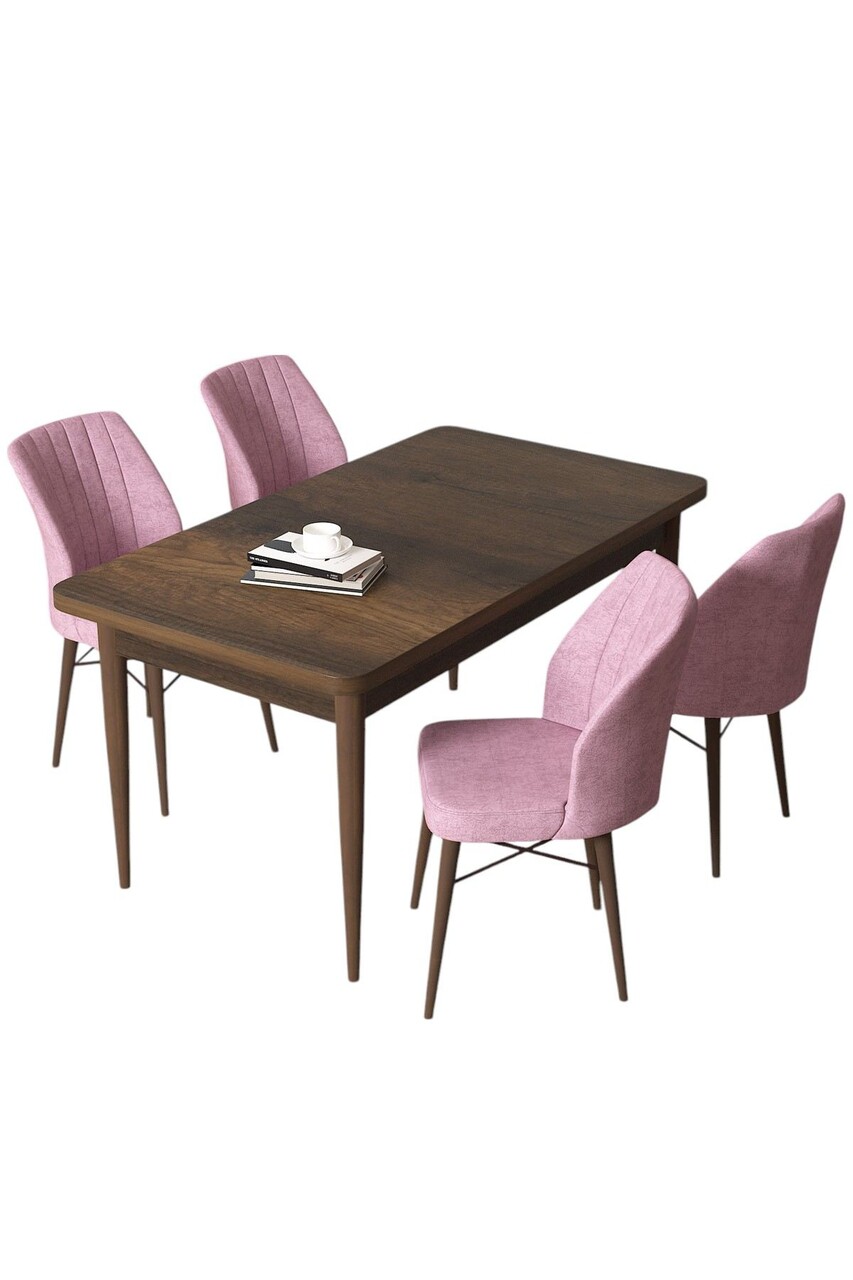 Set masă și scaune (5 bucăți), Hanah Home, Arp, Baroc / Roz