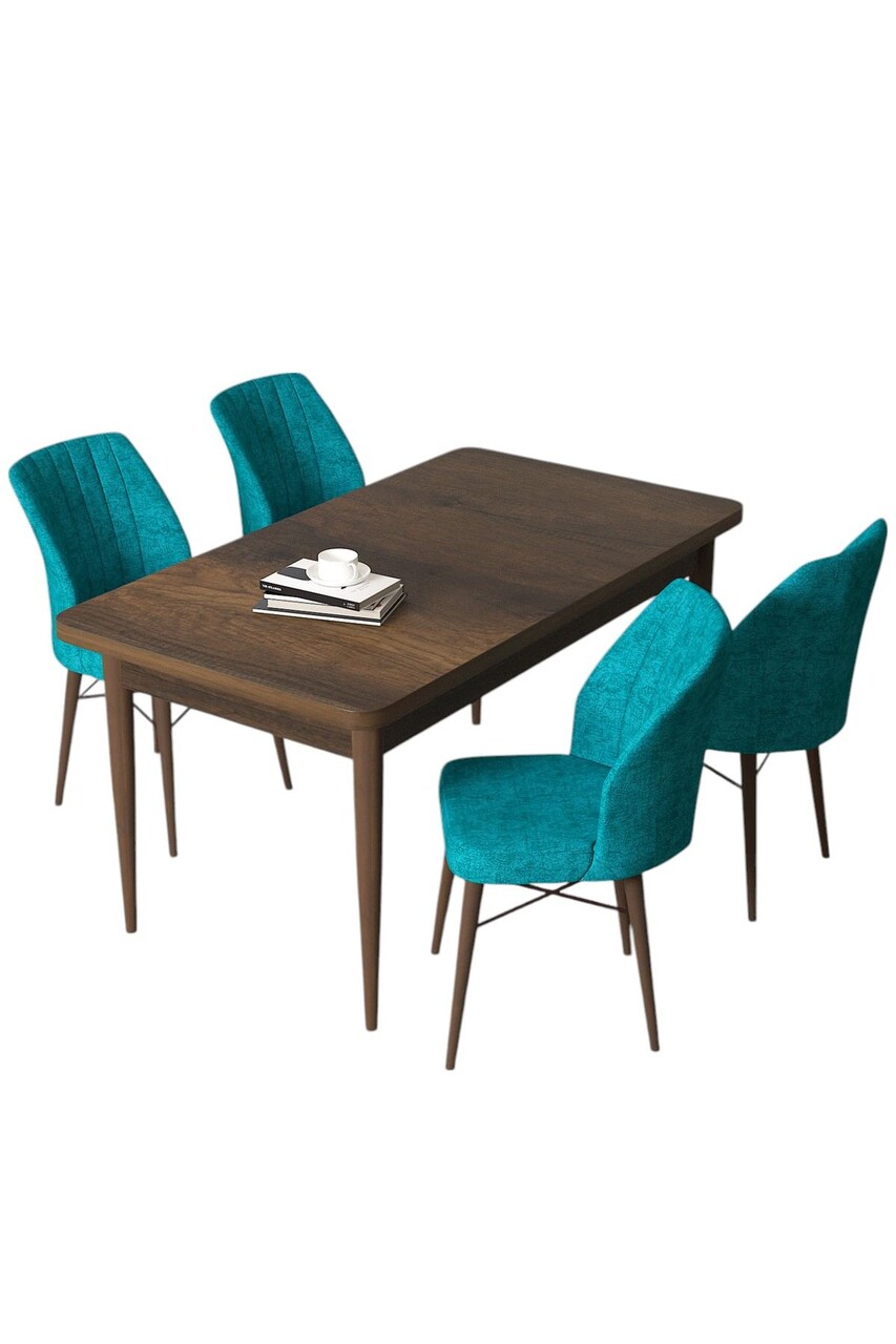 Set masă și scaune (5 bucăți), Hanah Home, Arp, Baroc / Turcoaz