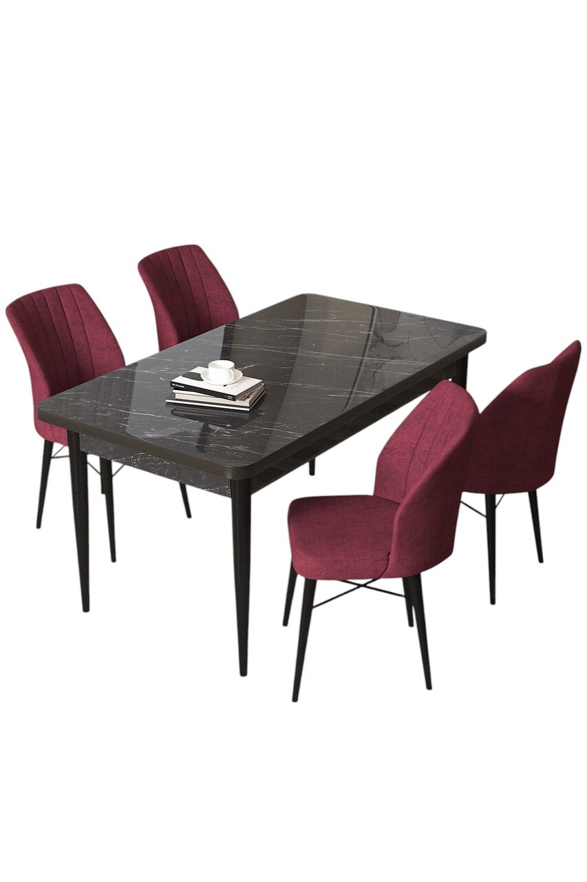 Set masă și scaune (5 bucăți), Hanah Home, Arp, Marmură neagră / Burgundia