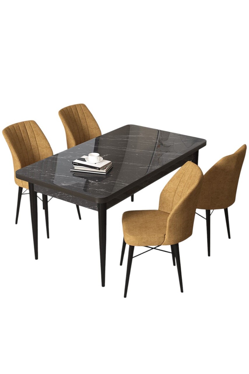 Set masă și scaune (5 bucăți), Hanah Home, Arp, Marmură neagră / Cappuccino