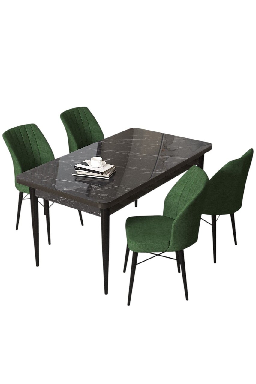 Set masă și scaune (5 bucăți), Hanah Home, Arp, Marmură neagră / Kaki