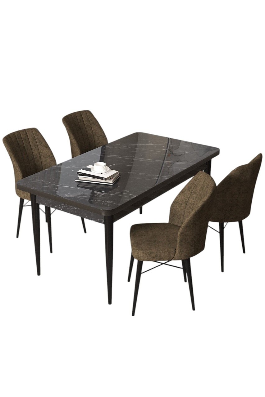 Set masă și scaune (5 bucăți), Hanah Home, Arp, Marmură neagră / Maro