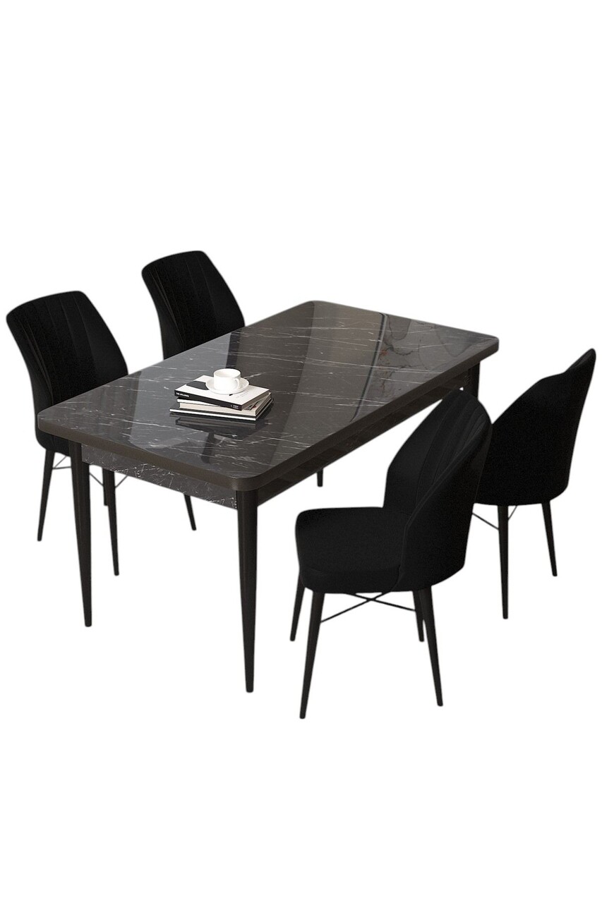 Set masă și scaune (5 bucăți), Hanah Home, Arp, Marmură neagră / Negru