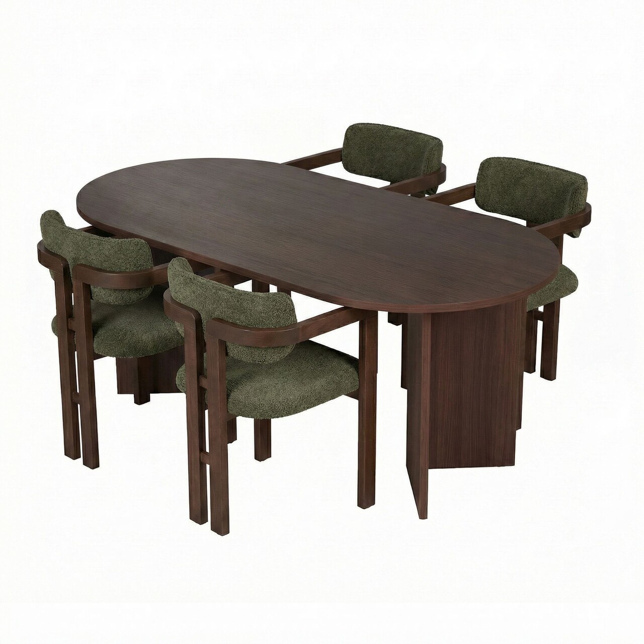 Set masă și scaune (5 bucăți), Hanah Home, Meridia 4, Nuc Milano / Nuc Închis / Verde