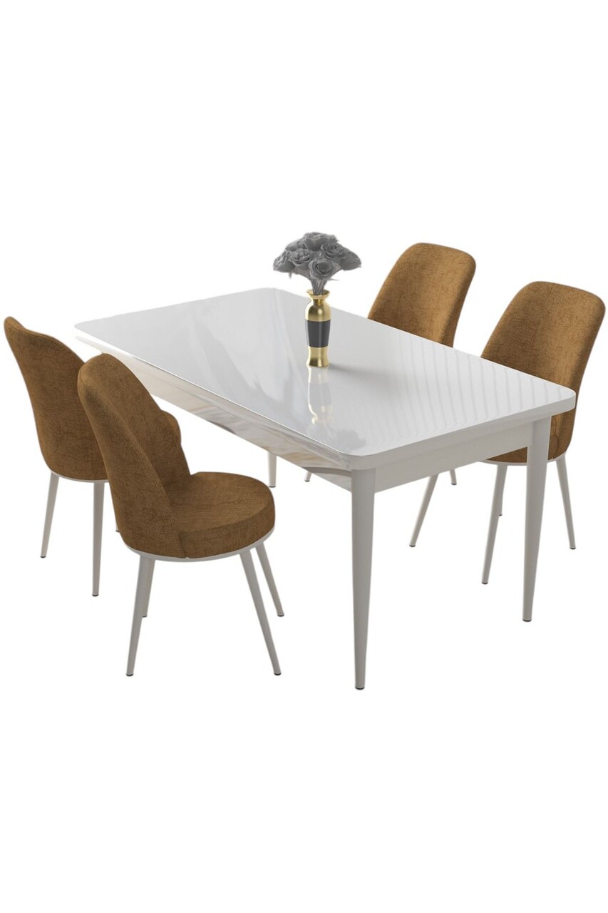 Set masă și scaune (5 bucăți), Hanah Home, Nil, Alb / Cappuccino