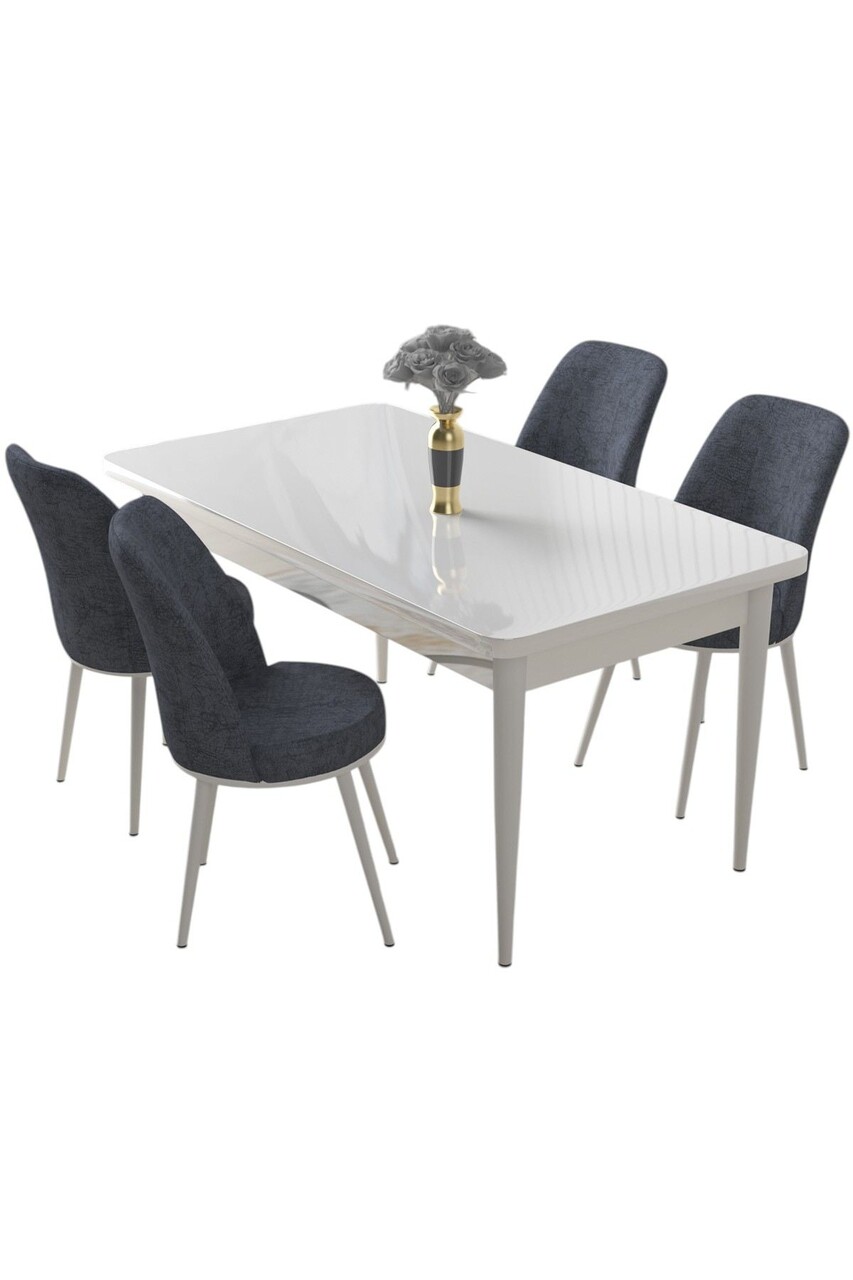 Set masă și scaune (5 bucăți), Hanah Home, Nil, Alb / Fum