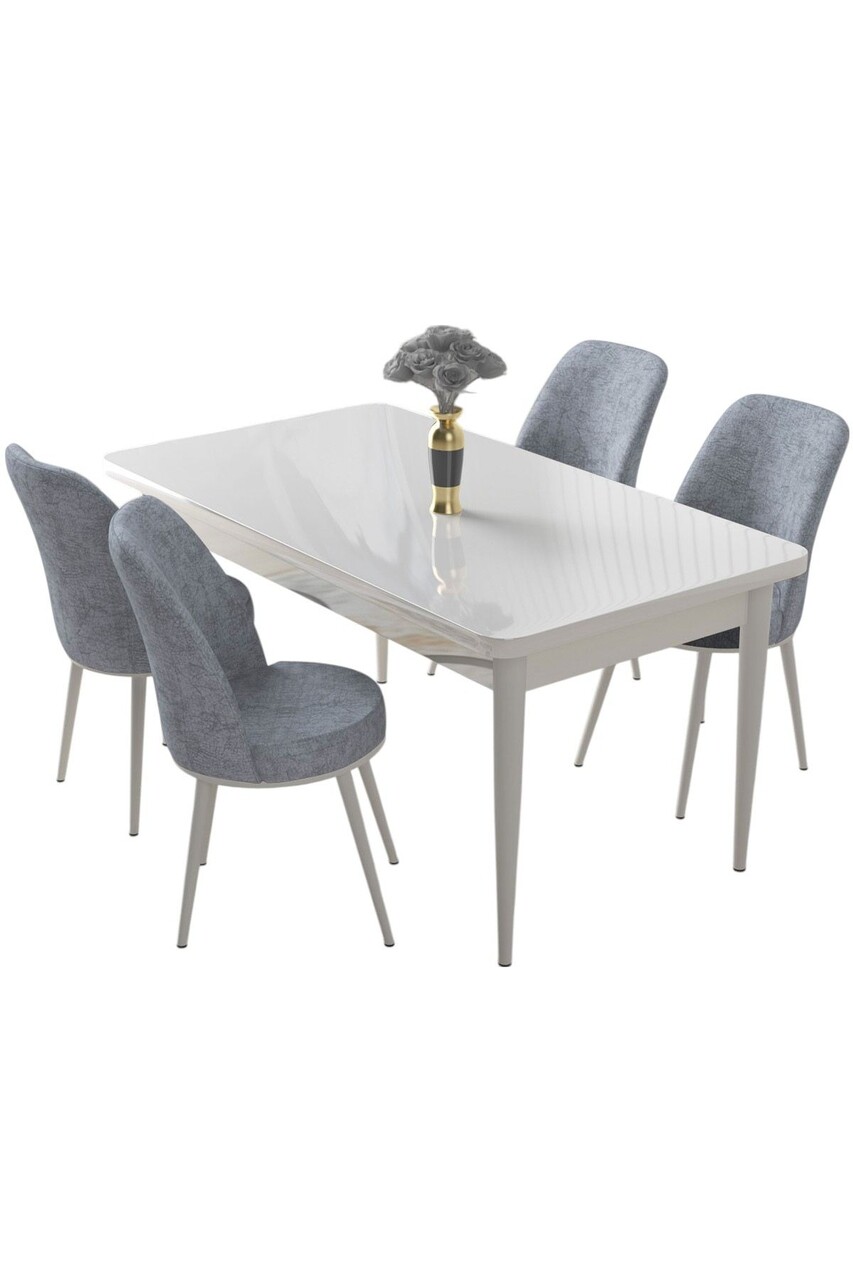 Set masă și scaune (5 bucăți), Hanah Home, Nil, Alb/Gri