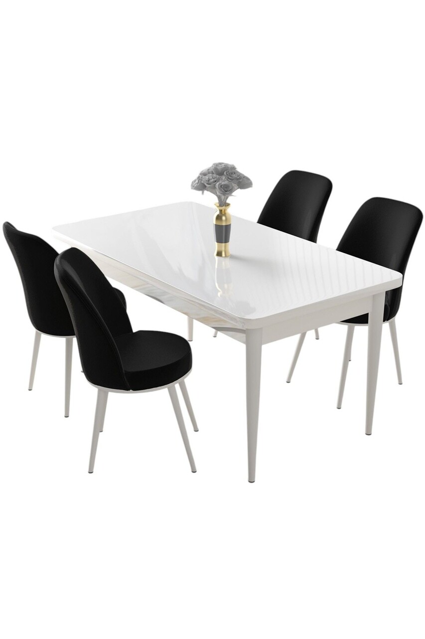 Set masă și scaune (5 bucăți), Hanah Home, Nil, Alb/Negru