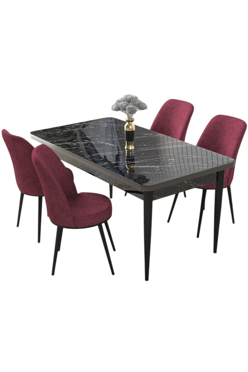 Set masă și scaune (5 bucăți), Hanah Home, Nil, Marmură neagră / Burgundia