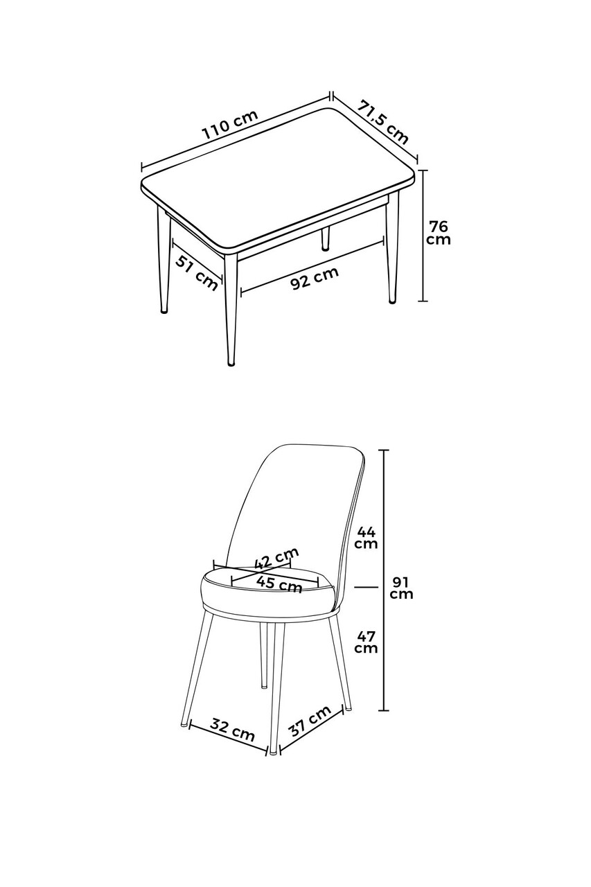 Scaun: 45 cm Inaltime: 91 cm Adancime: 42 cm (4 piese)