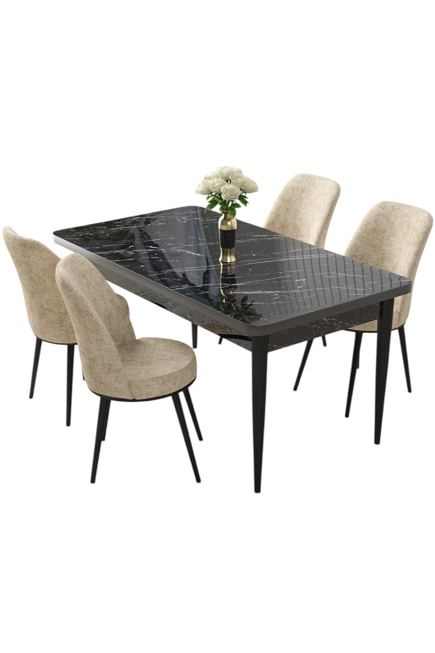 Set masă și scaune (5 bucăți), Hanah Home, Nil, Marmură neagră / Crem