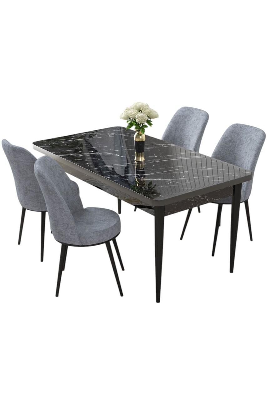 Set masă și scaune (5 bucăți), Hanah Home, Nil, Marmură neagră / Gri